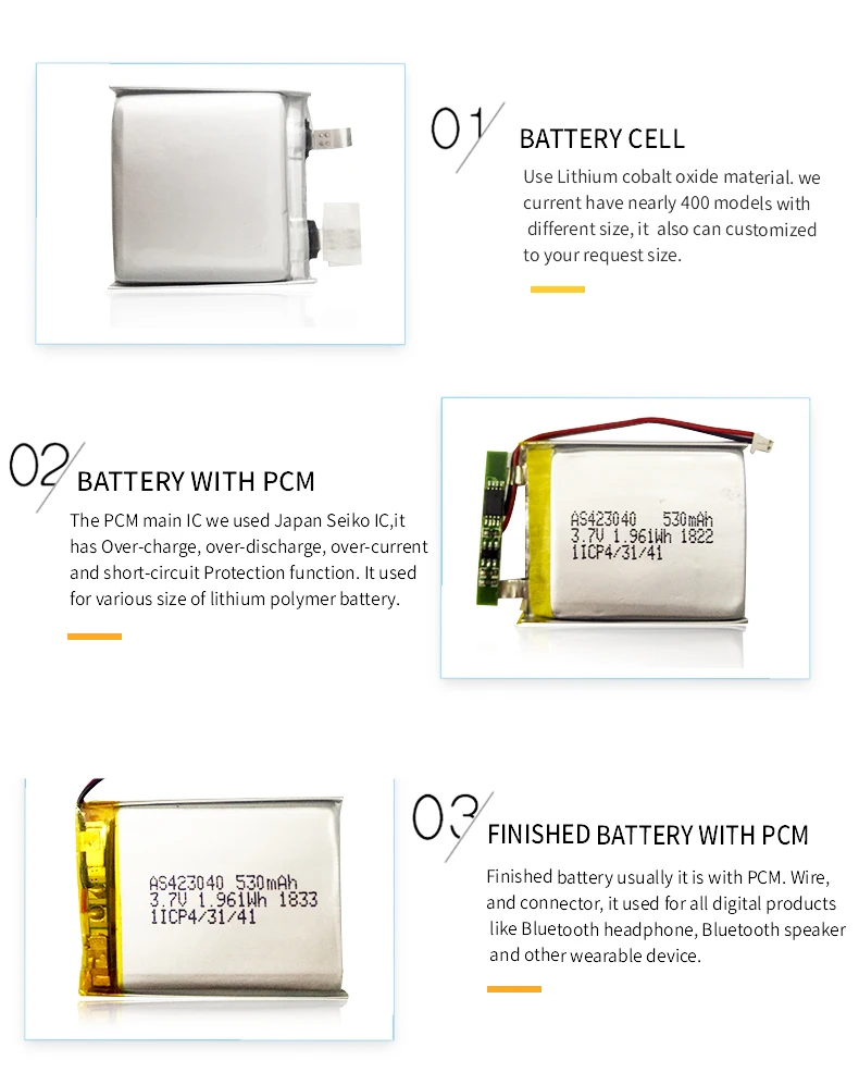 Product Description for KC certified 502030 3.7V 250mAh Lithium Polymer Battery For Bluetooth /camera