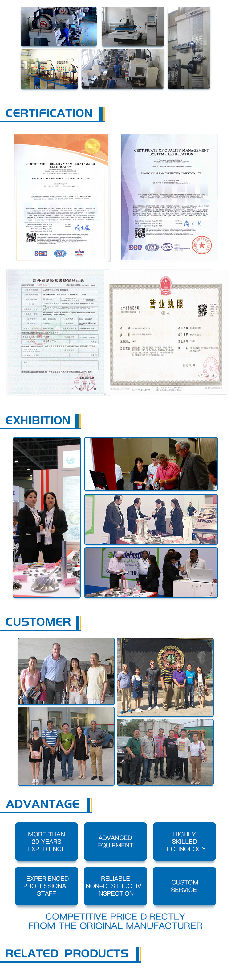 Shanxi Jiaerte Machinery Equipment Co., Ltd. (SCMEC) is a professional OEM precision machinery parts manufacturer and supplier, starting to produce ALCO, EMD and GE etc. Turbocharger replacement parts in China since 1998. SCMEC adheres to the business philosophy of "credibility first, customer first", and has won praise from customers all over the world with perfect quality, preferential price and sincere service. We offer replacement parts for turbocharger models: