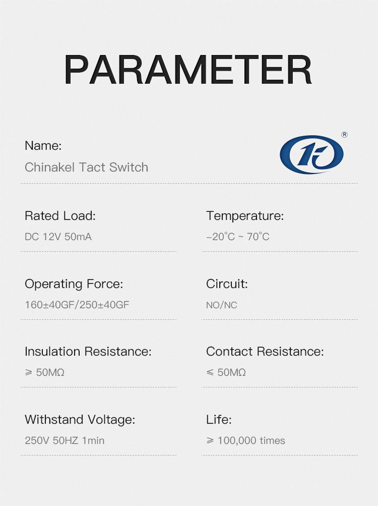 | Operating force: | 160gf/250gf | maximum. Voltage: | DC 12V |