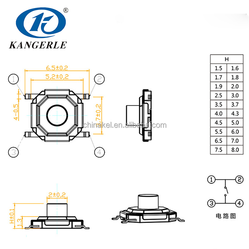 Chinakel 4x4x1.5H KEL-C005 smd tact switch mini electric switch | ||