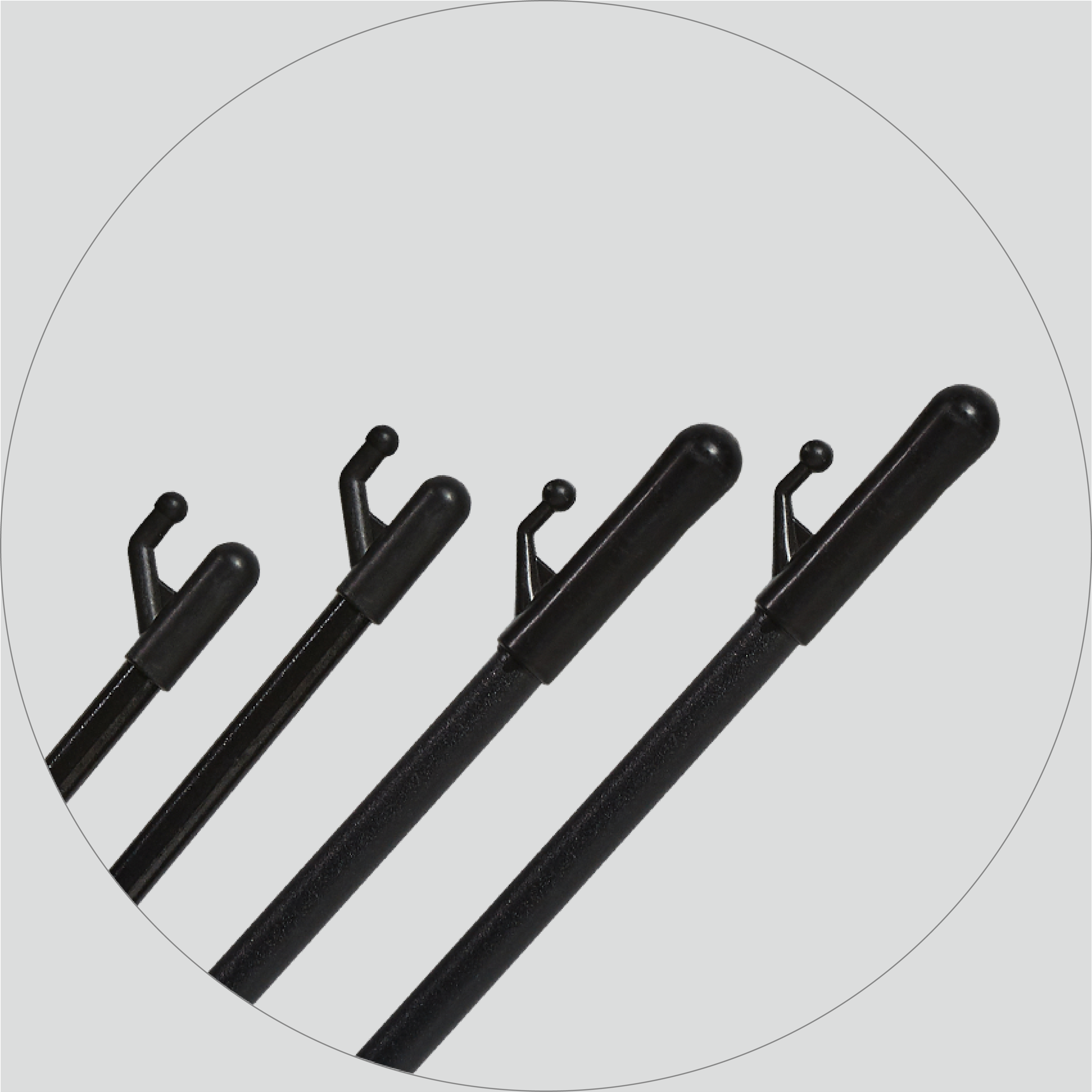 There are different materials for the upper and lower rods, such as fiberglass rods, iron rods, aluminum rods, and stainless steel rods. You can also choose a different color.