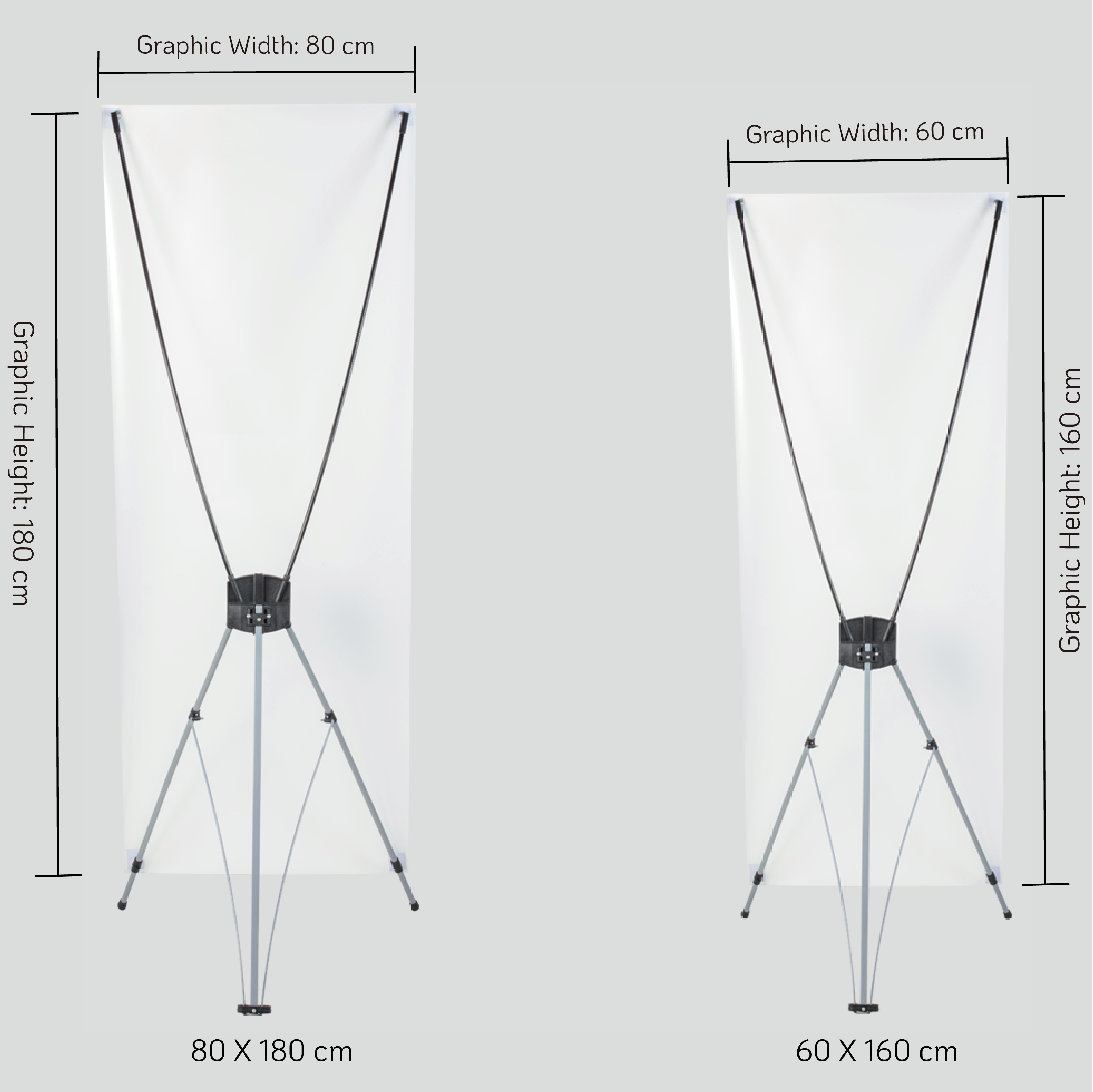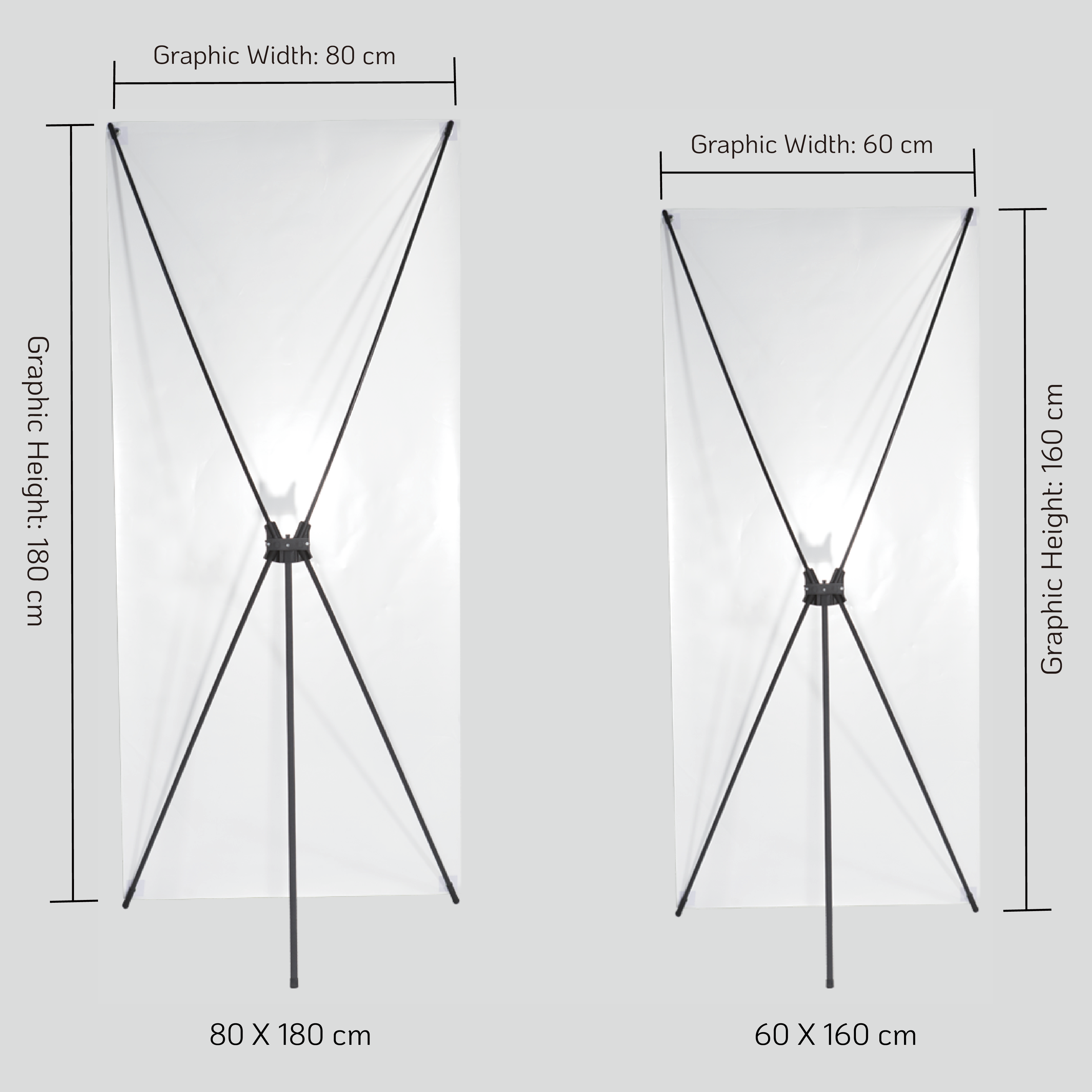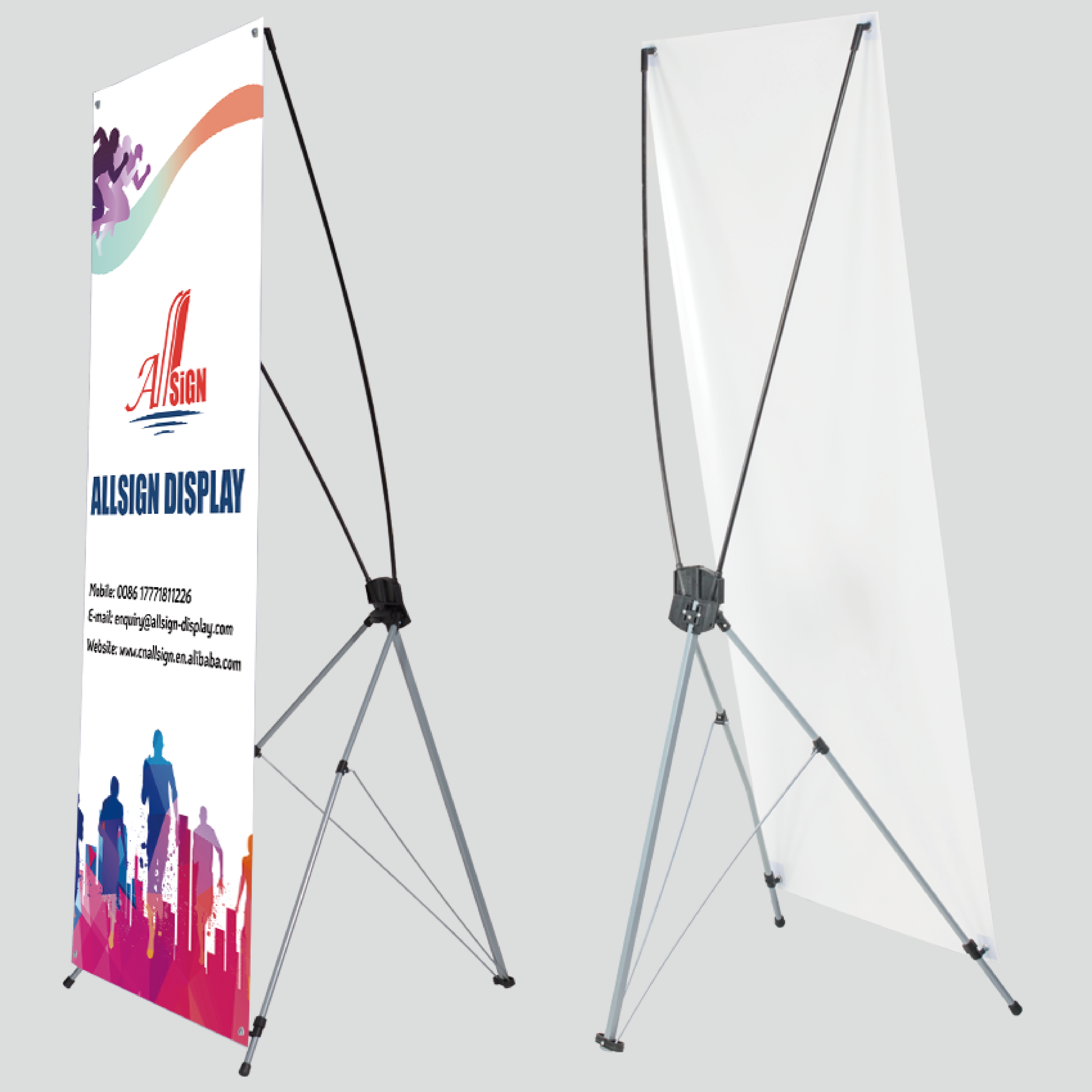 Our X Banner Stands mainly have three series, Indoor X Banners, Adjustable X Banners and Outdoor X Banners. Standard sizes 60 x 160 cm, 80 x 180 cm and 60~80 x 160~180 cm with adjustable sides. Affordable price, durable, portable, lightweight and easy to install, very popular choice compared to retractable roll up banners or fabric stands.