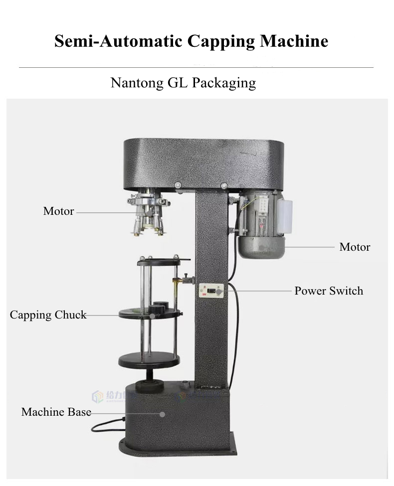 | product name: | Semi-automatic capping machine | Production capacity: | 100 bottles/min |