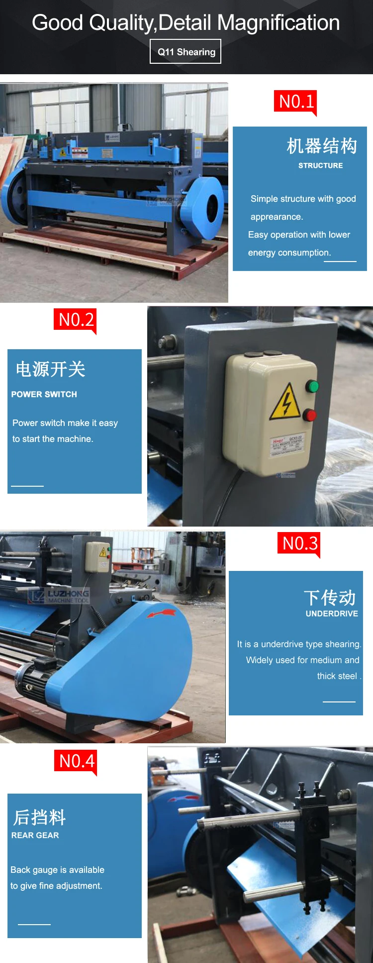 | Brand Name: | Luzhong Machine; | Supply Ability: | 100 Set/Sets per Month Sheet shearing machine Q11-4x2000 Shearing machine price; |