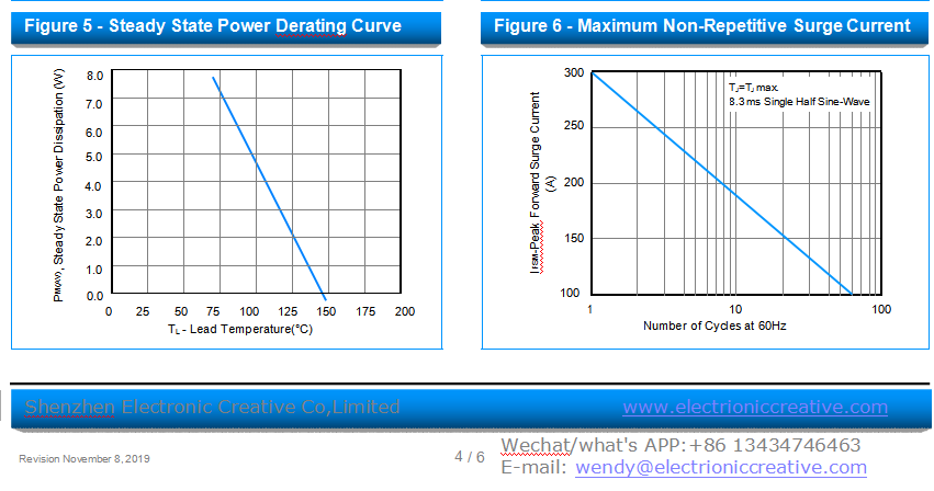 8.3ms single half sine wave, or equivalent square wave, duty cycle = 4 pulses per minute max. 4. VF < 3.5V for VBR < 200V and VF< 6.5V for VBR > 201V