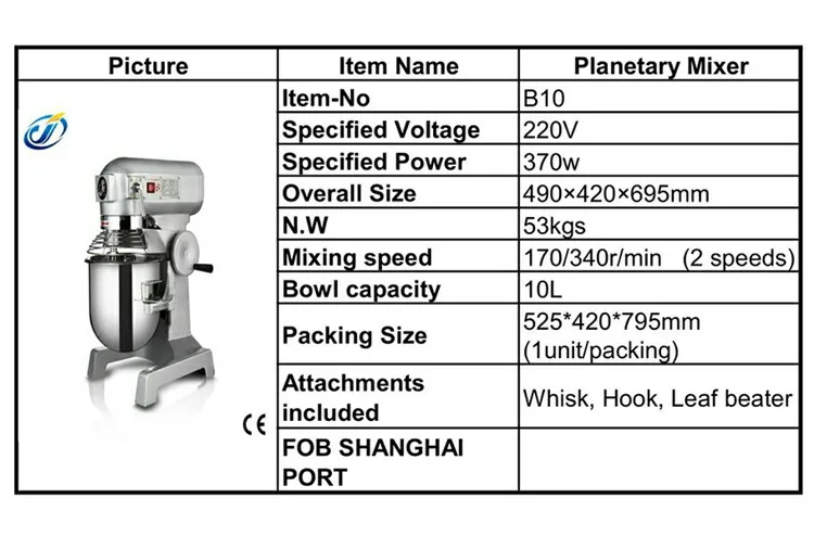 | Mixing Bowl Capacity: | 10L; | kneading bouldless: | 1kg/each time; |