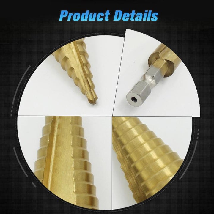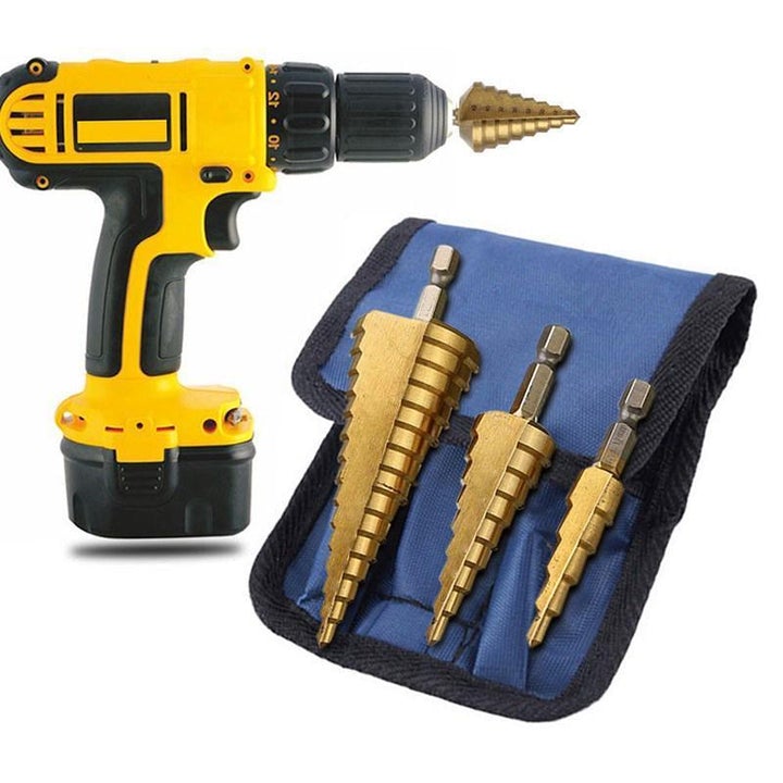 1/4" Hex Shank Drive Quick Change HSS Cone Drill Bit 3 Piece HSS Titanium Coated Step Bit Set