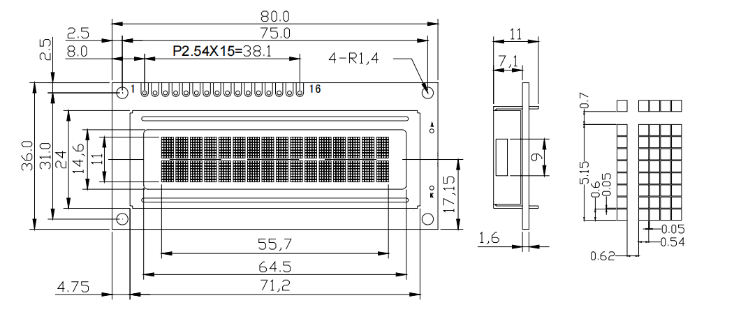 Display area: 64.5X14.6 Font: 5X8 points + cursor