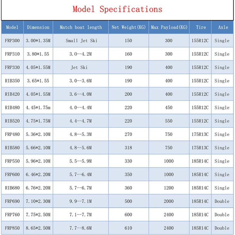 | product name: | boat trailer | axis: | single axis or double axis |