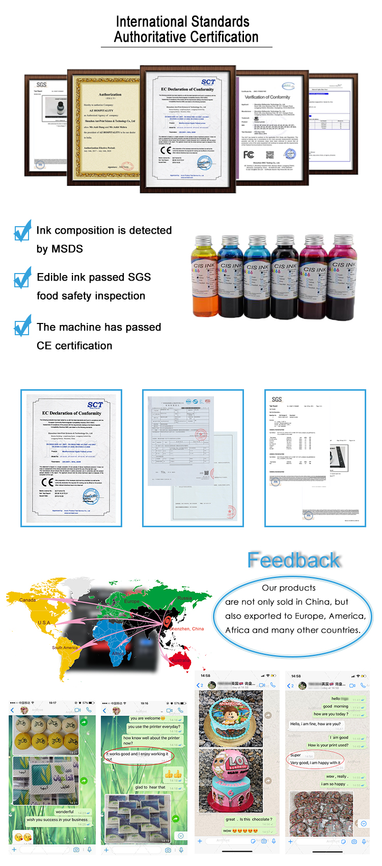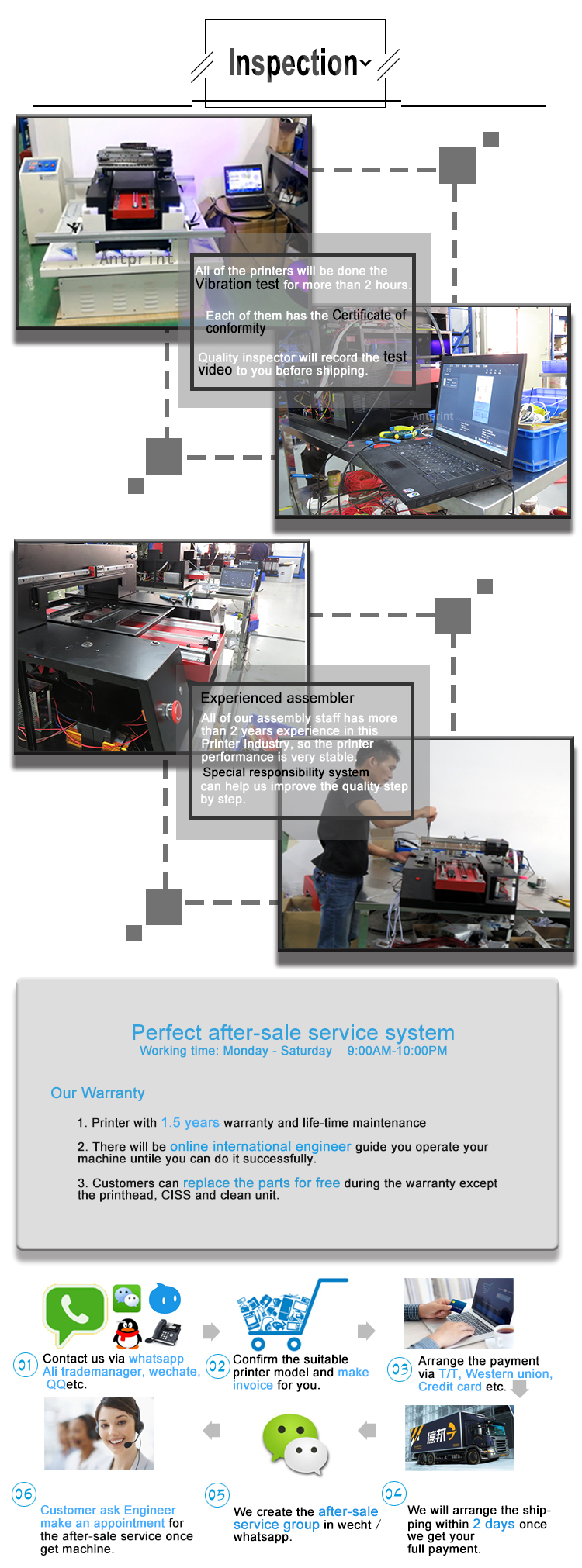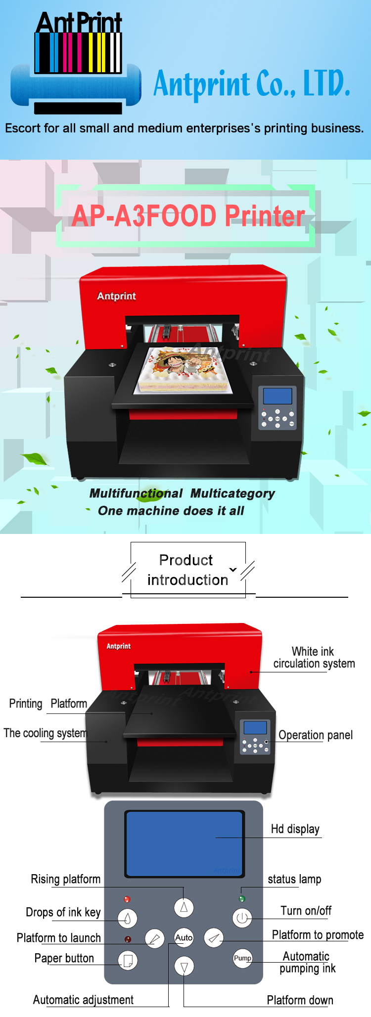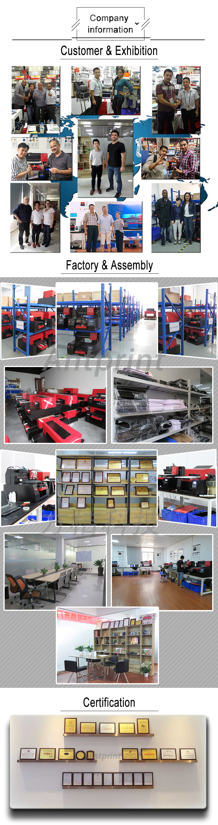 ant printing co., ltd.Years specialized in flatbed printers2007in China. Now we are doing all flatbed printer business likeUV flatbed printers, eco-solvent flatbed printers, food printers and textile printers. We also provide Eco Solvent Ink, UV Ink, Textile Ink and Food Ink, Eps Printer Head, Eps Main Board, Cleaning Unit, CISS (Continuous Ink Supply System), Cart, Damper, etc.