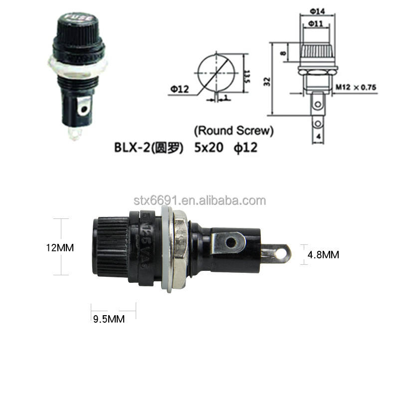 Glass fuse holder BLX-2 round screw high quality fuse holder 5*20MM
