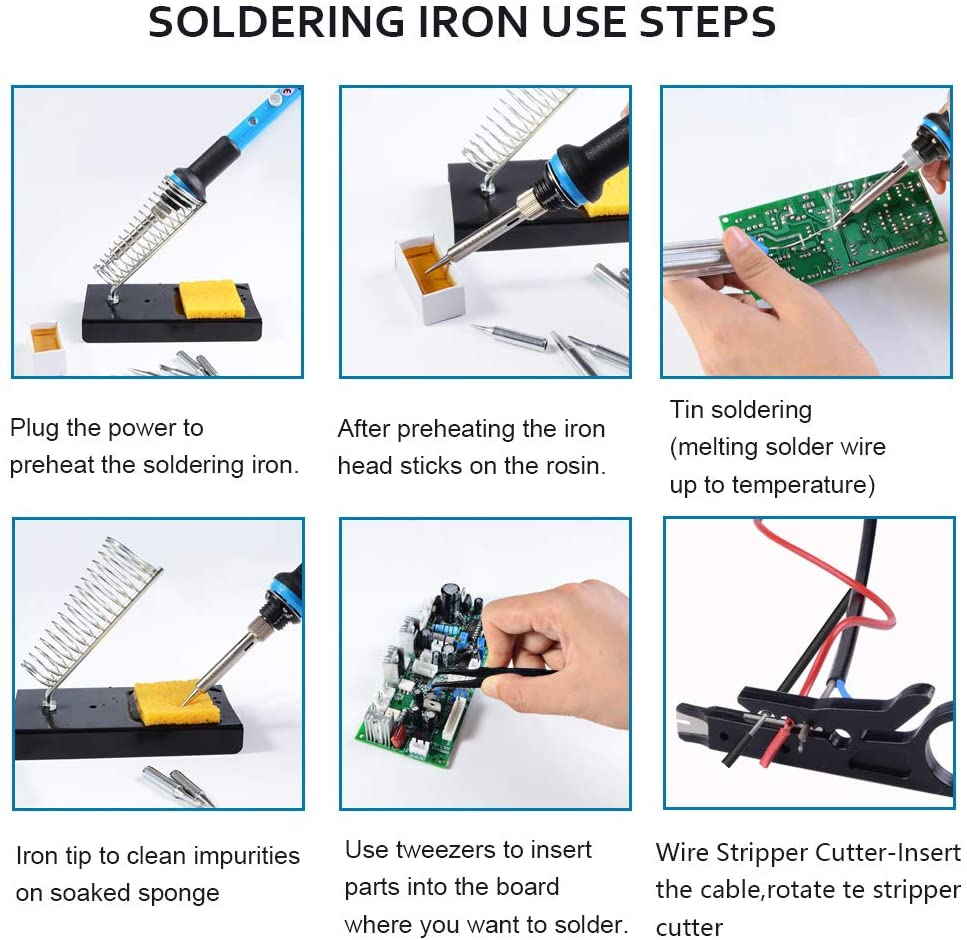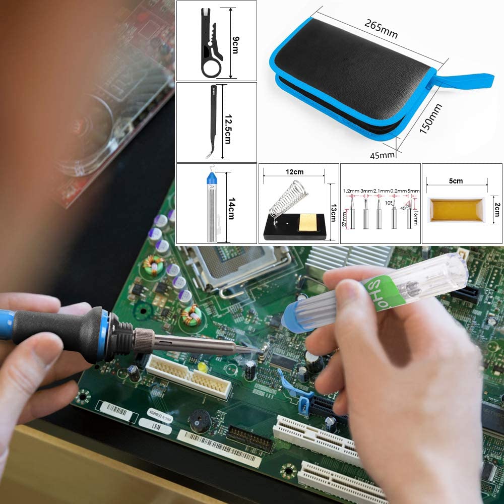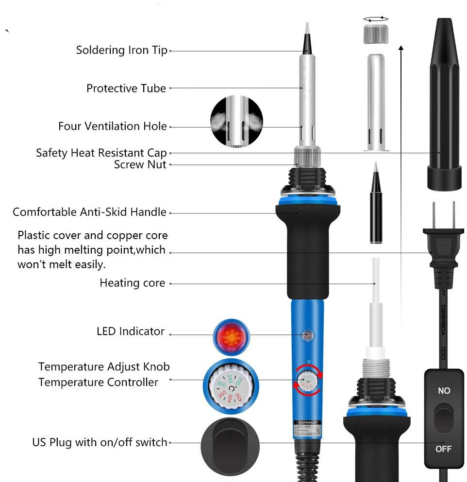 | Packaging Details: | 19 in 1 60w Soldering Iron Kit Electronics Package includes: 1 x 110V 60W Adjustable Temperature Soldering Iron 1 x Desoldering Pump 5 x Soldering Tips 1 x Soldering Tube 1 x Soldering Iron Stand 1 x Wire Clamp 1 x Multimeter and Multimeter Instructions (not included battery) 2 x multimeter pen 1 x screwdriver 1 x anti-static tweezers 1 x utility knife 1 x rosin 1 x electrical tape 1 x PU carrying bag |