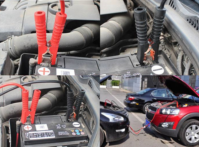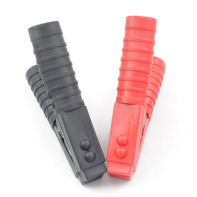 Red and black car battery test alligator alligator clip test fixture