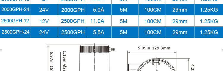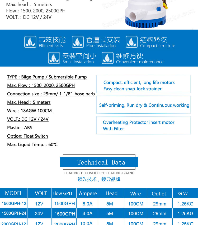 Bilge pump 1500GPH, 2000GHP, 2500GPH