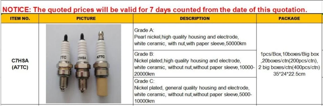 | Supply capacity: | 50000 pieces per month | type: | engine parts, spark plugs |