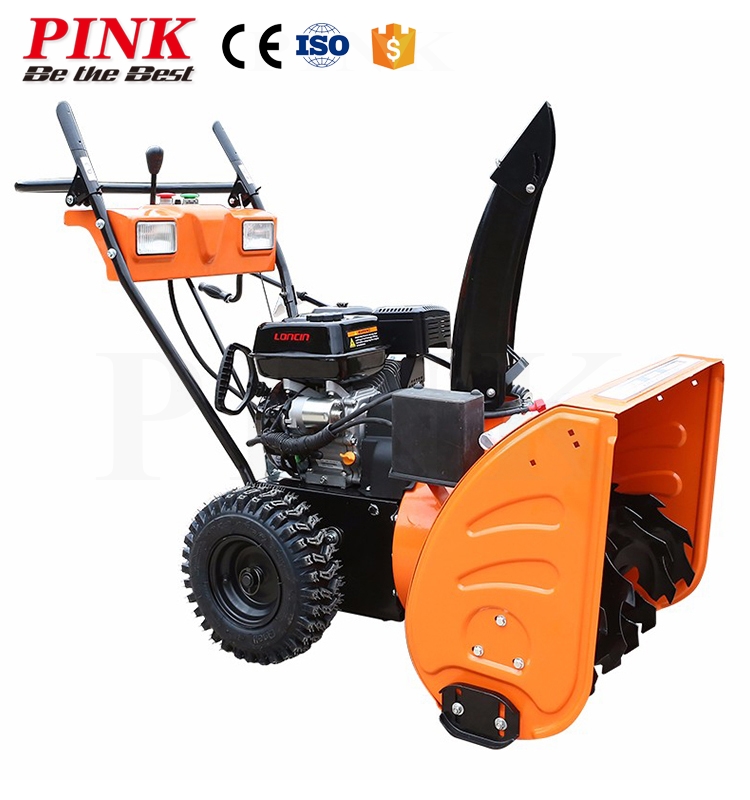 snowplow | Maximum Working Load: 2000 lbs/min. (theory) maximum. Throwing distance: 10-15 meters (theoretical value) Working Width: 28" (71 cm); Fuel Capacity: 6.5 L Working Thickness: 22" (56cm) Chute rotation angle: 190 degrees Engine model: famous brand Zongshen or Loncin Operating capacity per tank (approximately): 3.5 hours Power supply: maximum 11.0HP (8.1Kw). Transmission type: friction disc Stage gear: 4 forward gears and 2 reverse gears Starting method: Recoil and battery starter Wheel type: 15X5.5-6 inch tires |