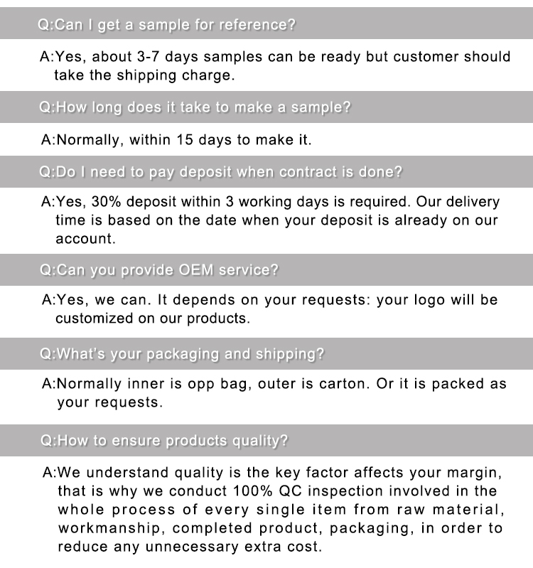 Bulk lead time: | 10-15 days after sample approved and deposit paid |