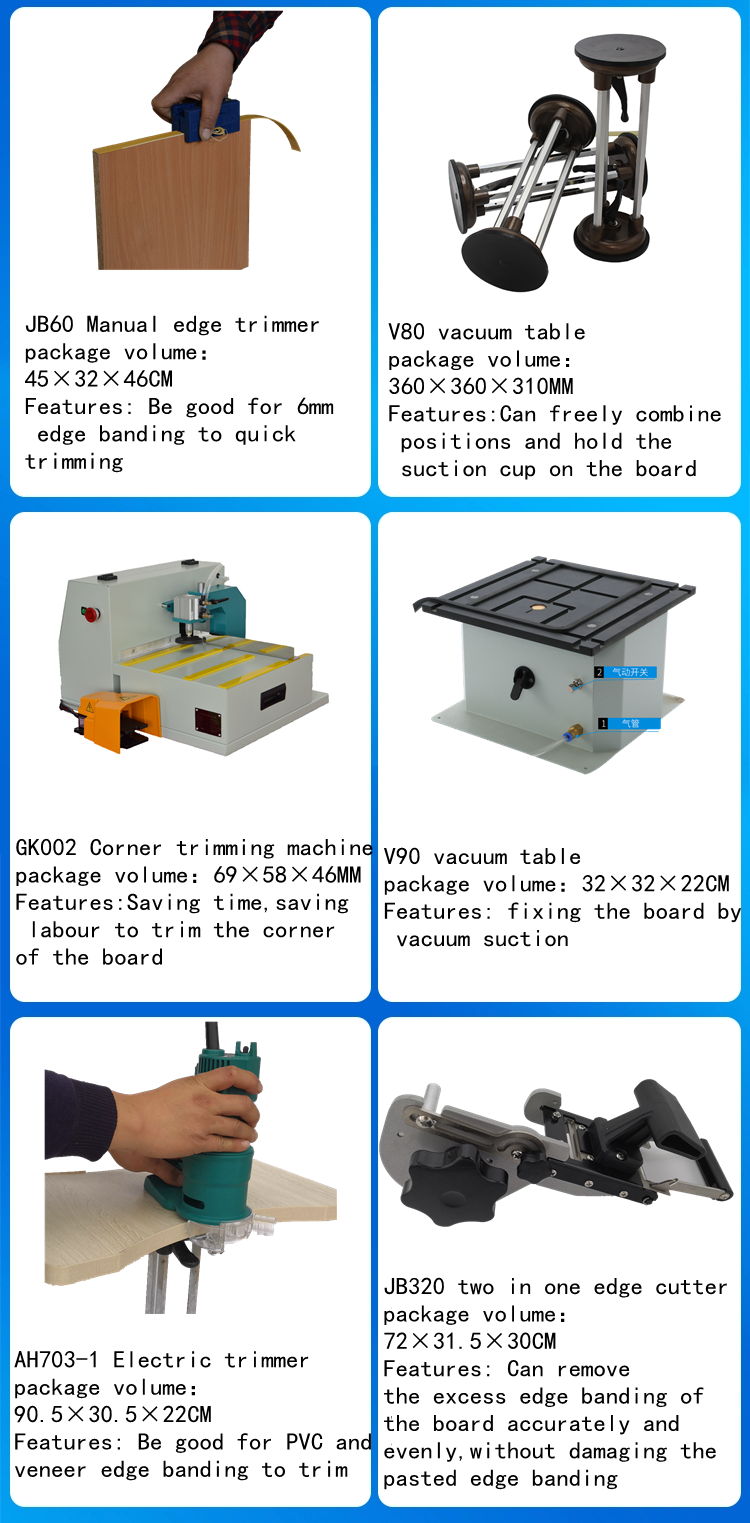 Jiebang Motor Manufacturing Co., Ltd. was established in 2009, focusing on the production of portable edge banding machines, filleting machines, small edge banding machines, trimming machines and other small woodworking machinery. We manufacture and supply what you need, what you look for and what you like.