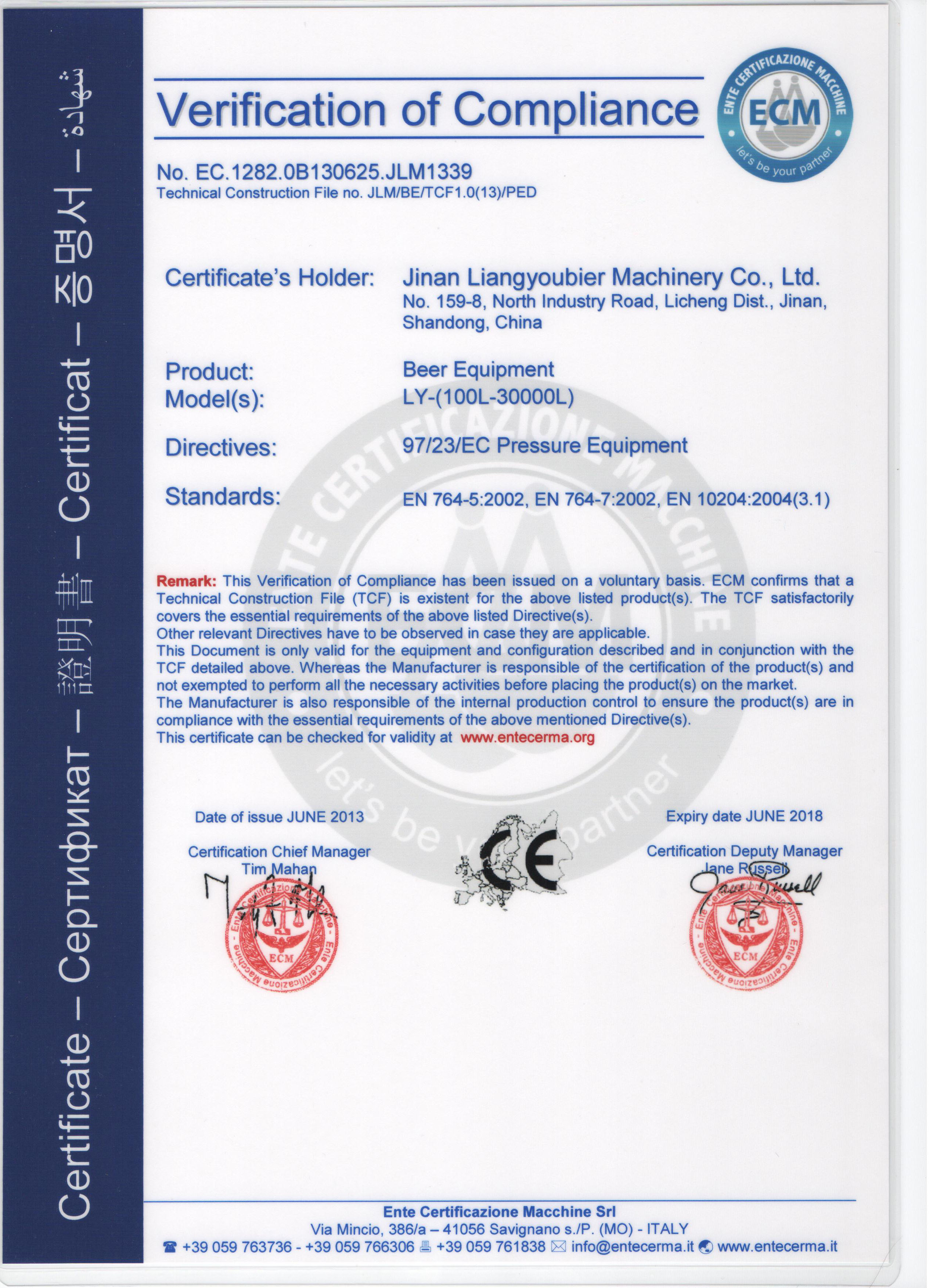 | Certification: | ISO 2000, CE, Rohs, tuv mark, Ped | Processing type: | beer |
