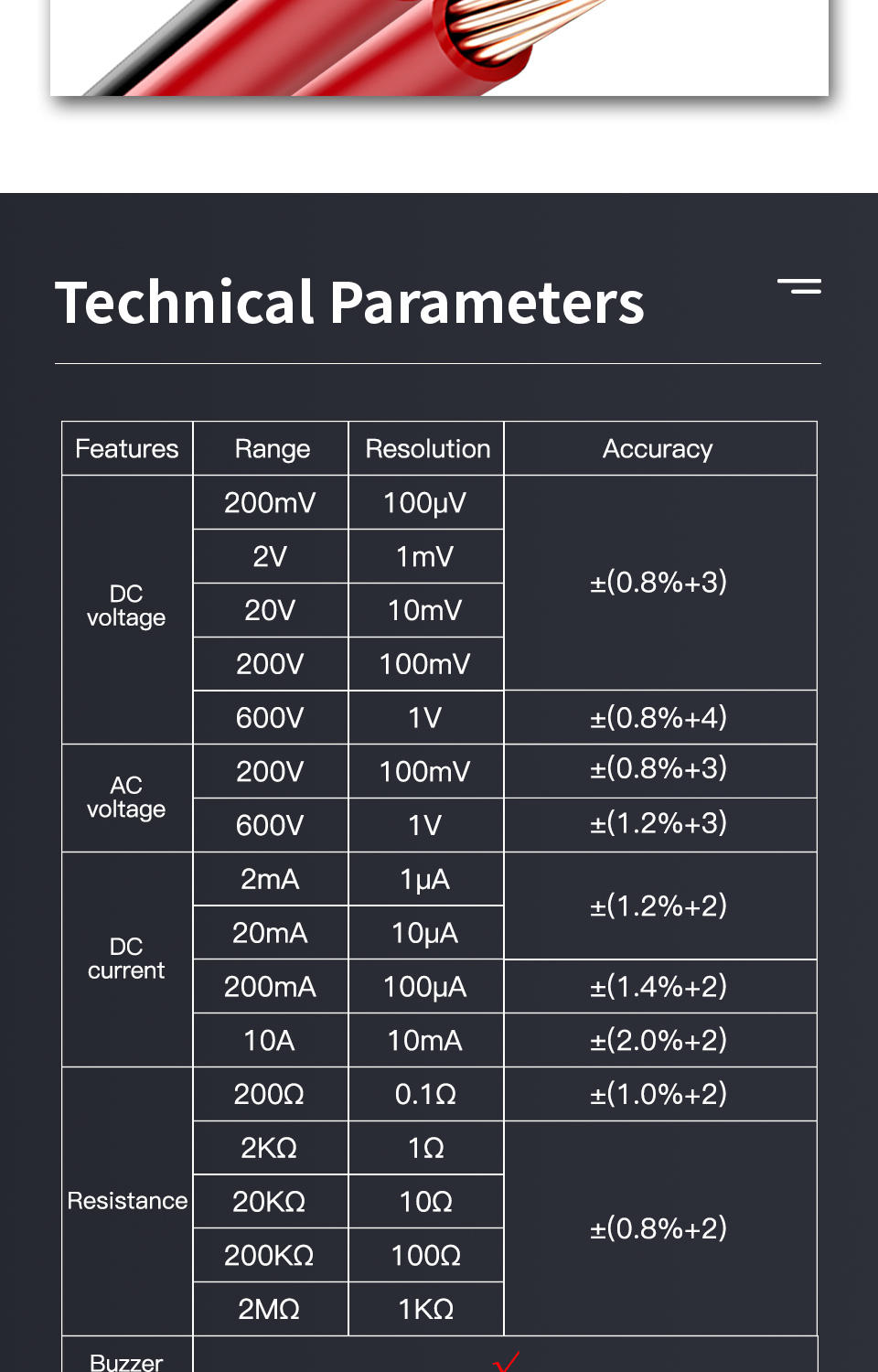 DC voltage: 200mV-2-20-2000-600v plus or minus 0.5%