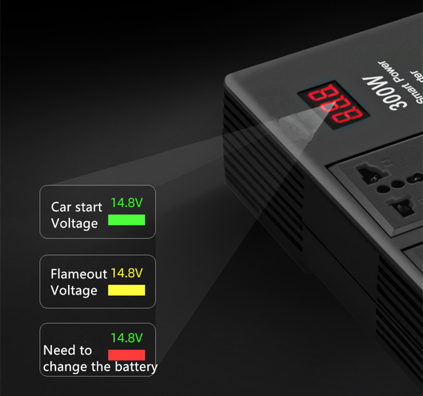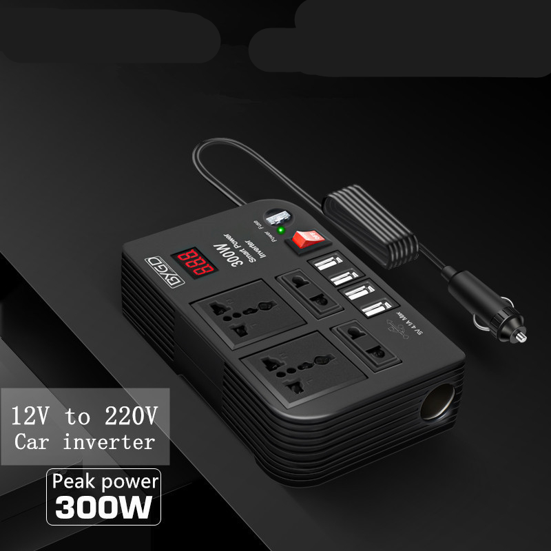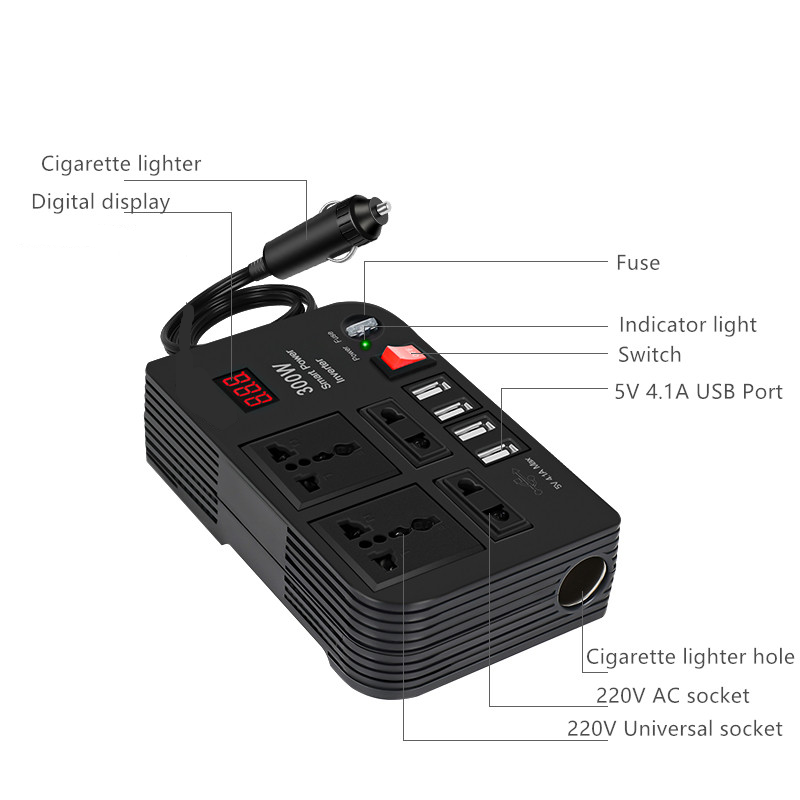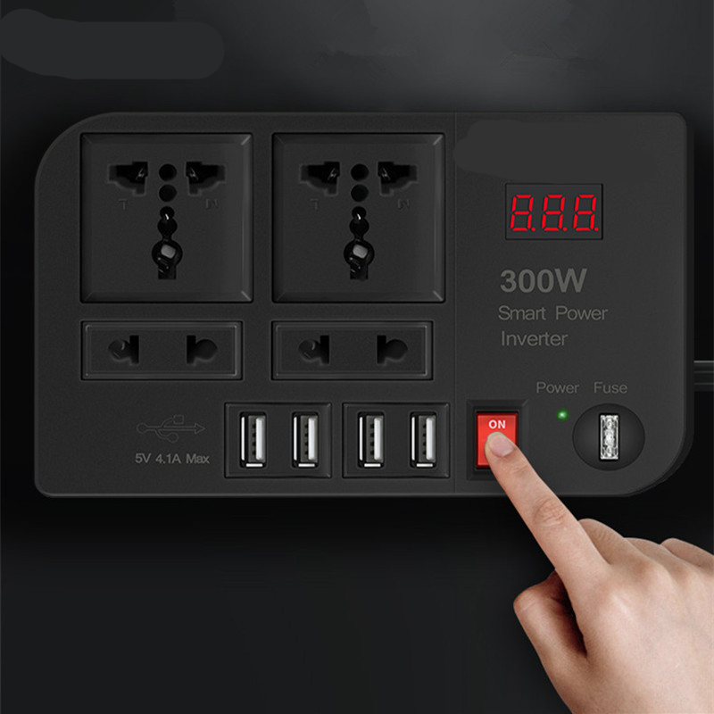 300W Car Inverter DC 12V to AC 220V Power Converter Splitter 4 USB Fast Charging Universal Socket Smart Voltage Monitor