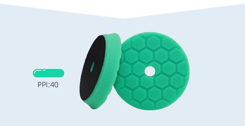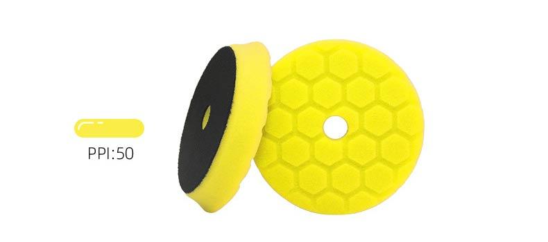 The sponge is hollow and coarse with highly abrasive properties. It is usually used in conjunction with rough cutting and polishing machines. It can effectively remove 1500/2000# sandpaper marks, scratches, spiral marks and repainted oxide layer. It is mainly used for the post-treatment of paint restoration, with strong leveling force, and can improve the thick oxide layer on the paint surface.