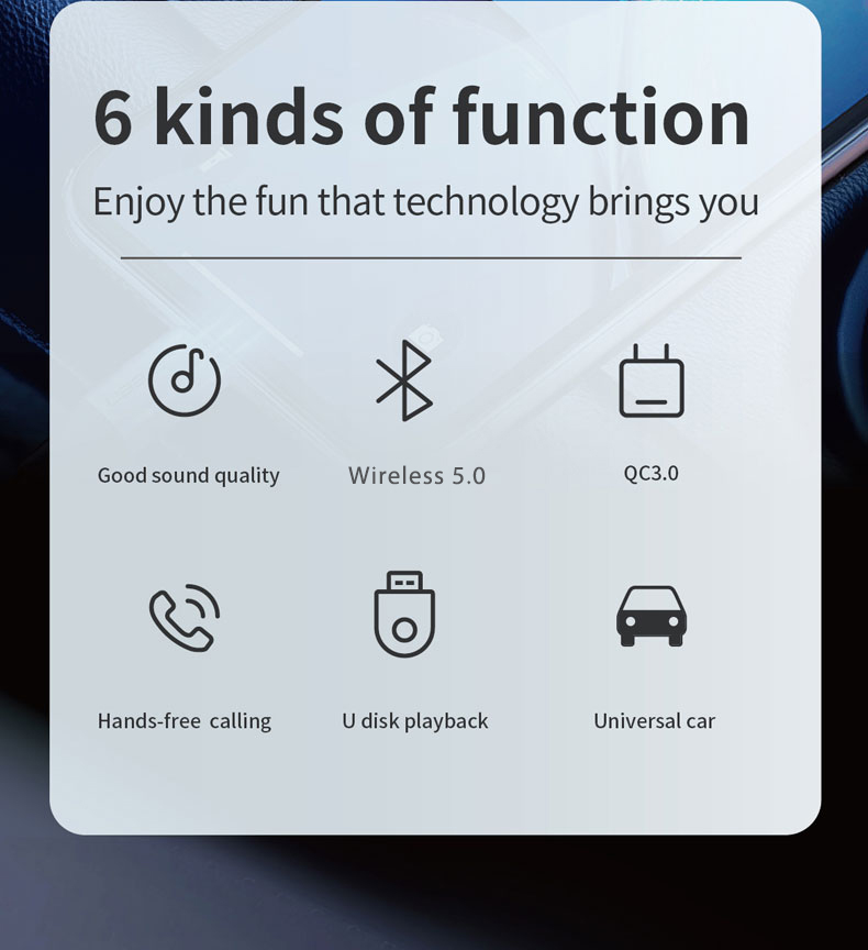 | Function | PD20W Car Charger, Bluetooth-MP3 Player |