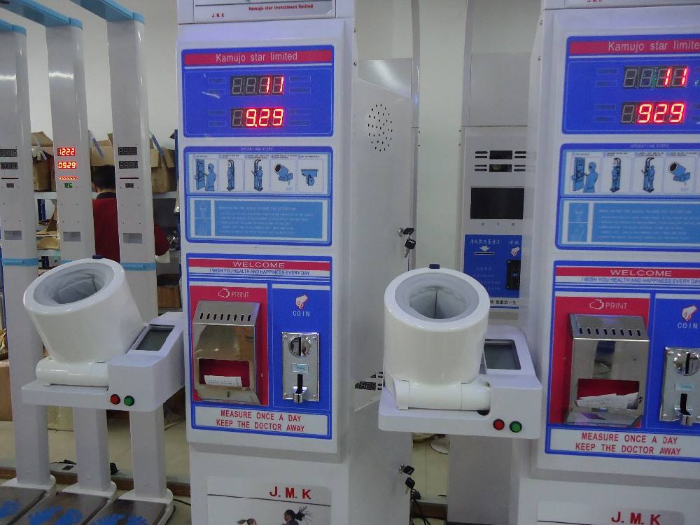 This machine is controlled by microcomputer. It can measure height, weight, and automatically calculate BMI after coin insertion. Original Omron blood pressure monitors are of the highest quality. Measurement results can be displayed, printed and spoken. With its advanced ultrasonic technology and exquisite appearance, it has been widely recognized by domestic and foreign markets. Different kinds of languages can be selected according to your requirements. The thermal printer prints fast and prints clearly, this kind of printer is a heavy-duty printer, easy to operate and maintain.