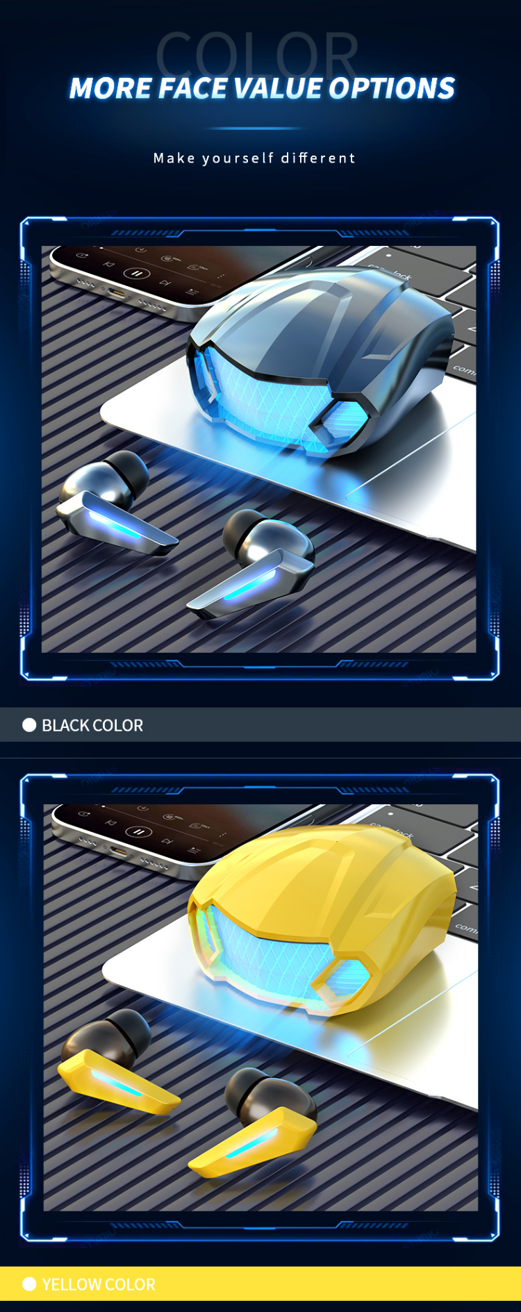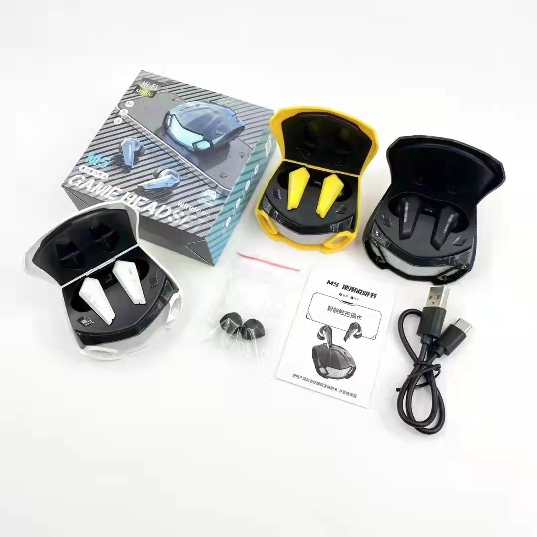 | product name: | M5 Wireless Gaming Headset Earbuds | color: | black, white, yellow |