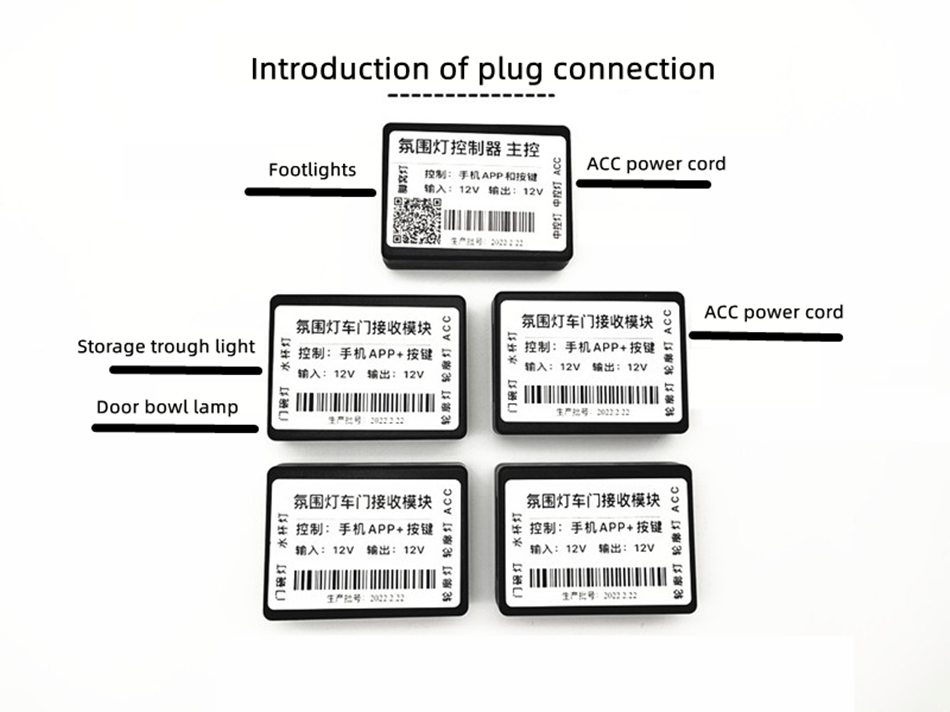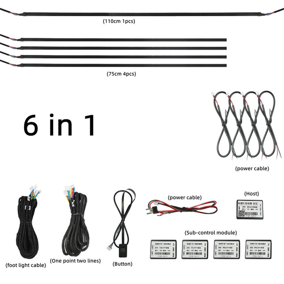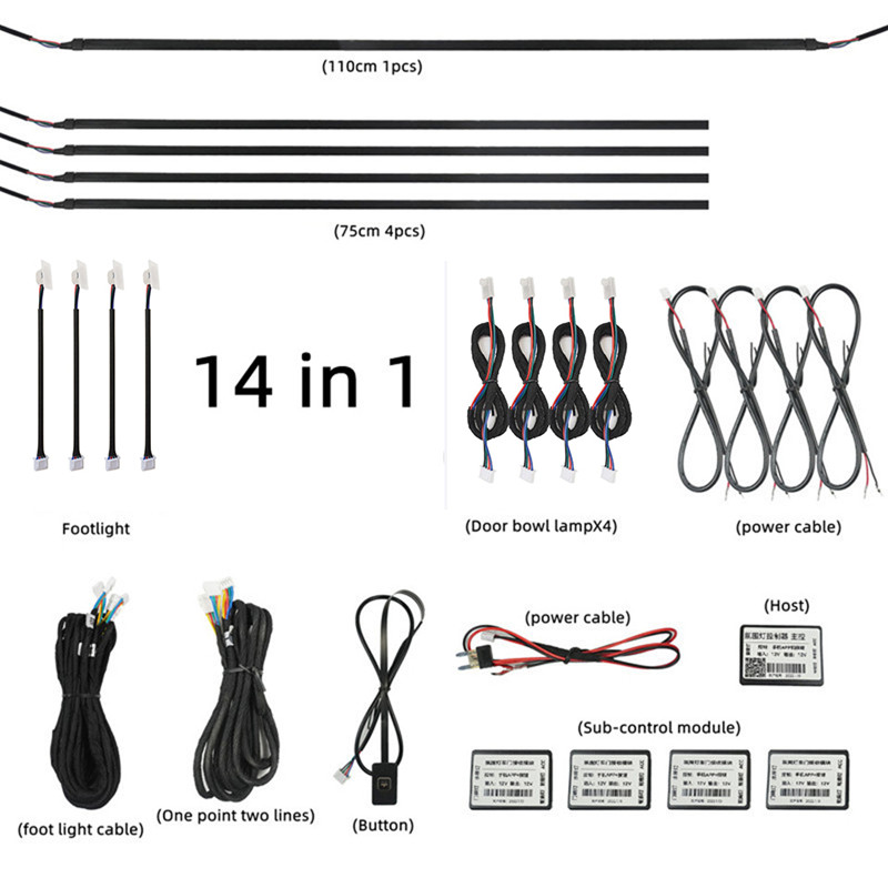 - Item Type: 14 in 1 (6 LED strips (75cm/4+110cm/1 ) + 4 ambient (foot) lights + 4 door bowl lights + 1 main control box + 4 sub controls)