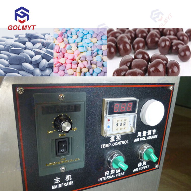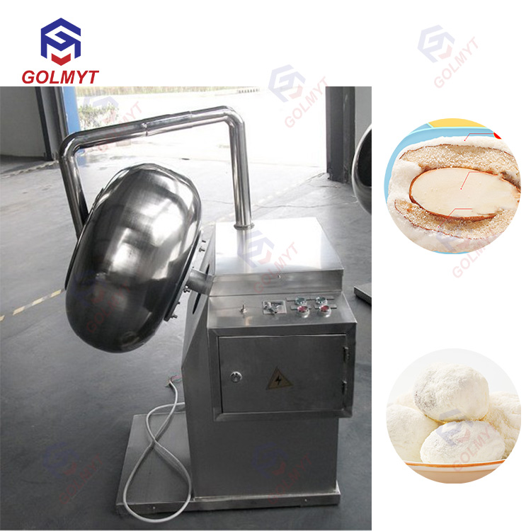 1. The small chocolate coating machine is suitable for the coating of sugar coating, chocolate, vitamins and fruit shells of pills, medicinal materials, nuts, dried fruits, pastries and other products.