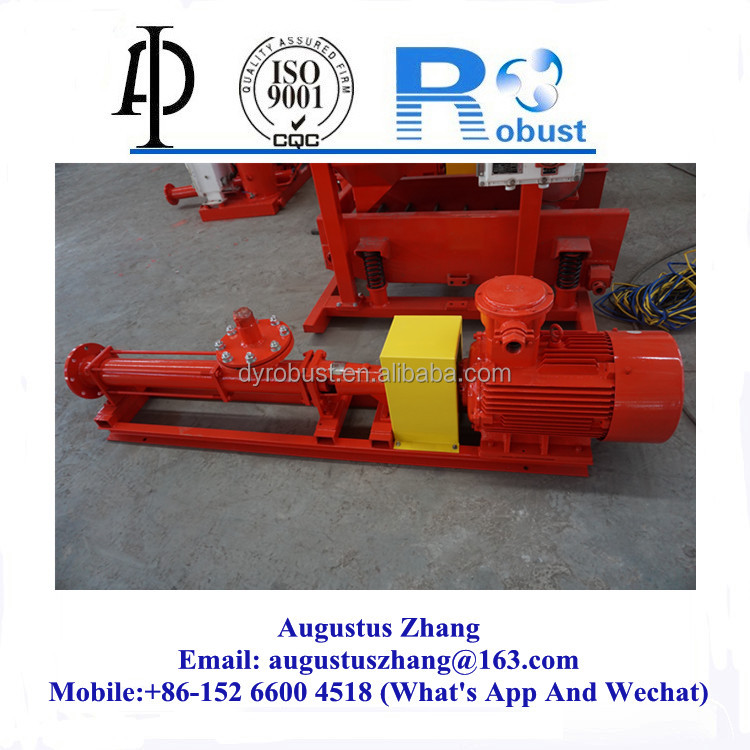 A progressive cavity pump is a positive displacement pump that uses one or more screws to move fluid or solid material along the screw axis. There are single-screw pumps, twin-screw pumps, three-screw pumps, and five-screw pumps. For the drilling mud process, we use progressive cavity pumps to transport the drilling fluid from desilter tanks or centrifuge tanks to decanter centrifuges