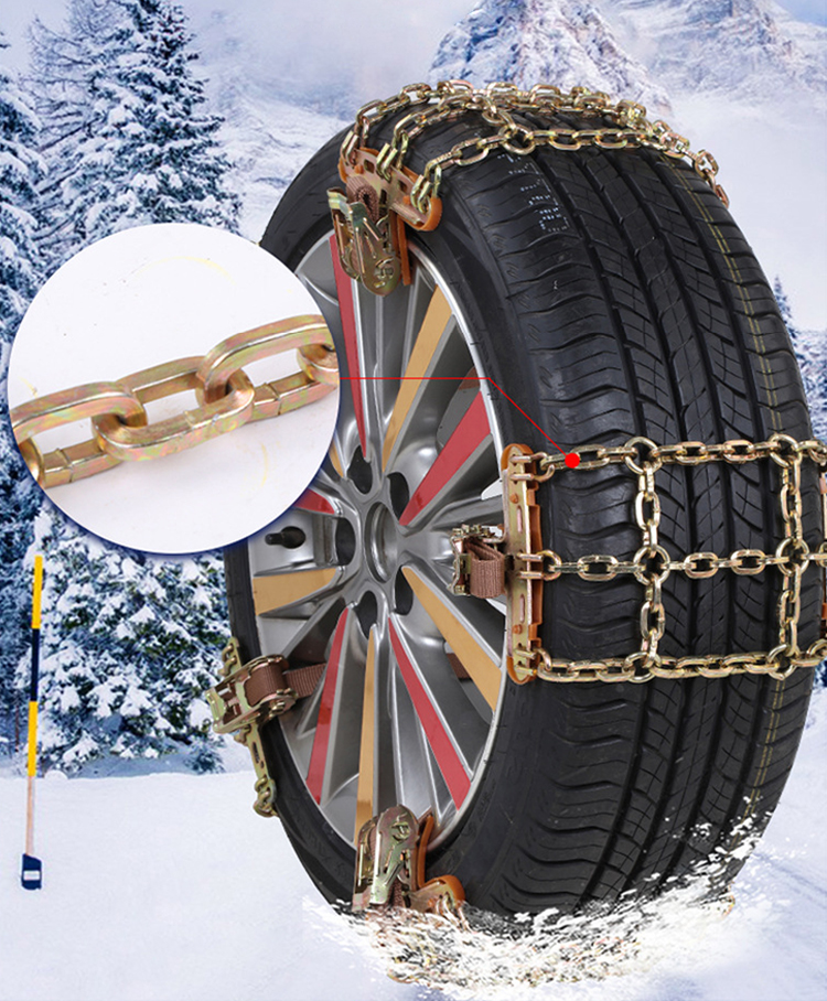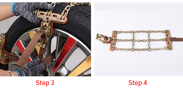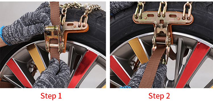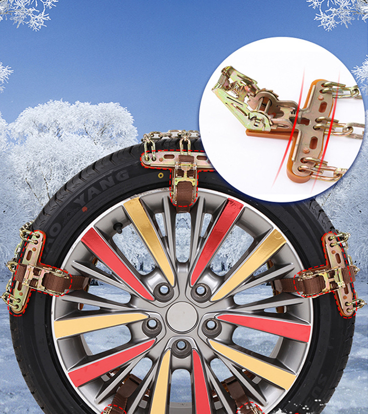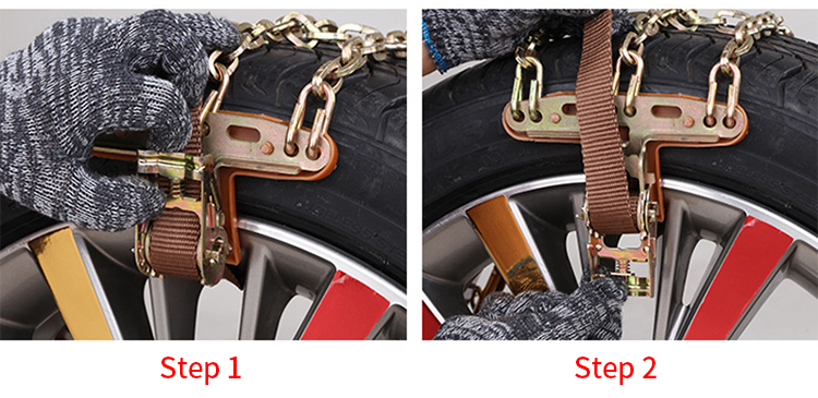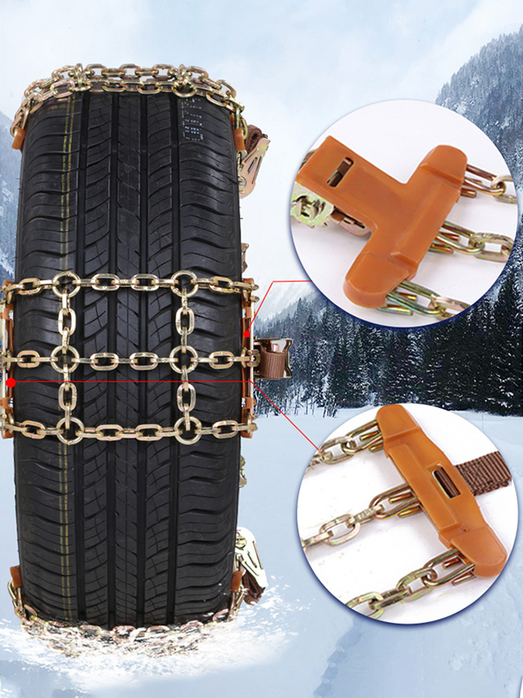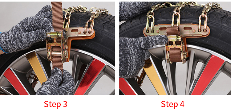Tightens the snow chain and automatically balances the chain to refit the tire