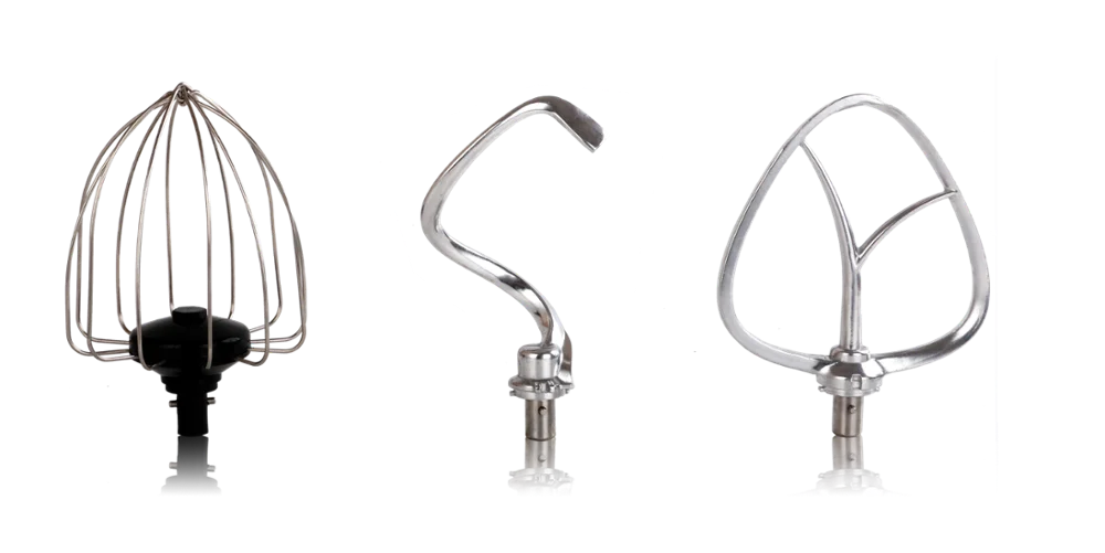 3 types of beaters for mixing,whisking and dough making.