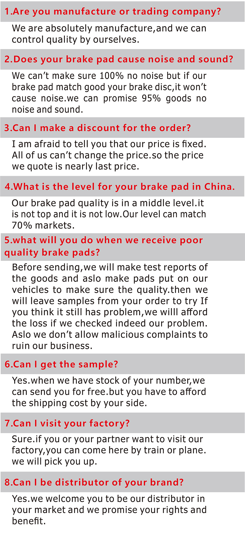 | reference number. : | 140526-825, BBP1551, 111_0117, 140526-049, B1.G102-1085.2, RB0526, 2200661 | Packaging Details: | Four brake pads are sealed in a set and placed in a colorful natural color box and brown carton |