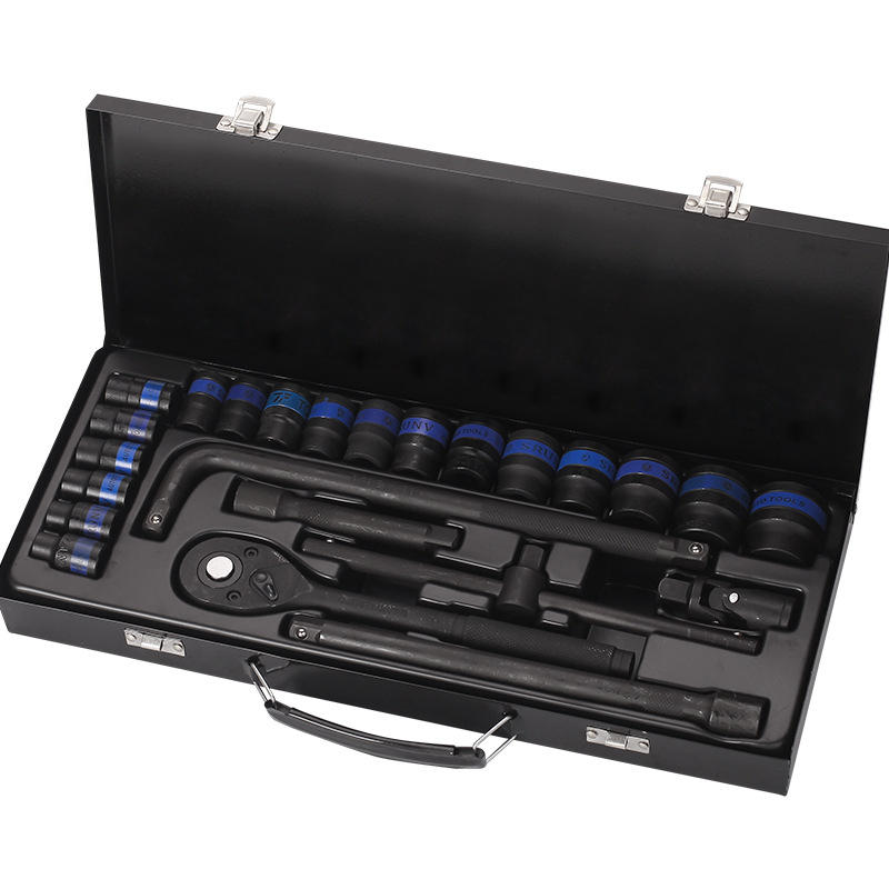 24pcs Tool Set Include 1pcs 1/2 Ratchet Handle 1pcs 1/2*5 Inch Connecting Rod 1pcs 1/2*10 Inch Connecting Rod 1pcs 1/2 Slider Rod 1pcs 1/2 Universal Connector 1pcs 1/2 F Rod 18pcs 1/ 2 sets (38L): 8MM, 10MM, 11MM, 12MM, 13MM, 14MM, 15MM, 16MM, 17MM, 18MM, 19MM, 20MM, 21MM, 22MM, 24MM, 27MM, 30MM, 32MM