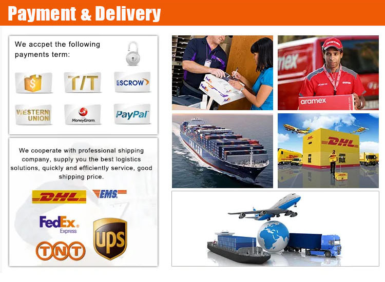Q: What's your payment terms?We are very flexible in payment, we accept T/T, PayPal, Western Union, Trade Assurance, etc.