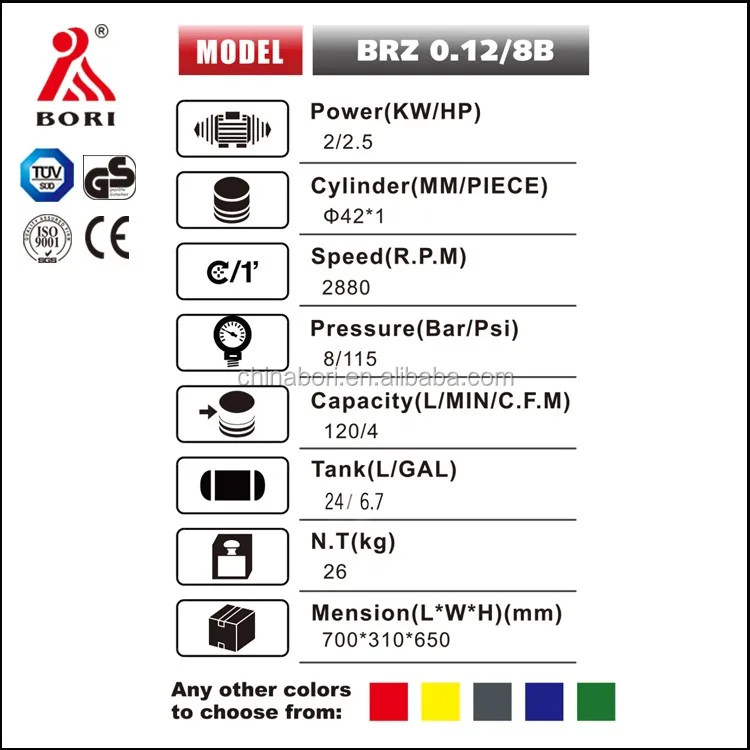 We hold the following certifications:GS, CE, TUV and ISO9001. Our air compressors have been sold to more than 30 countries. If you require special certification, we are happy to provide samples for testing.
