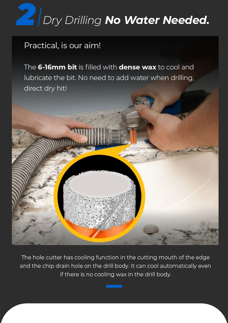 | product name: | Diamond Core Bits | Material: | Diamond + 45Mn steel |