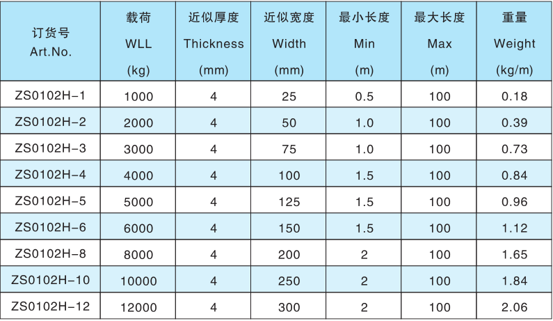 According to customer requirements, the safety factor of the sling is 4:1, 5:1, 6:1, 7:1, 8:1, the load range is from 0.5t to 100t, produced according to international standards, for color and load capacity .