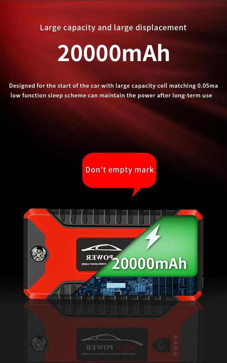 | Packaging Details: | Jump Starter 12v 20000mAh High Power Car Jump Starter Power Bank/Multifunctional Portable Lithium Battery Car Jump Starter Power Adapter, USB Cable, Battery Clip | Function: | led lights |