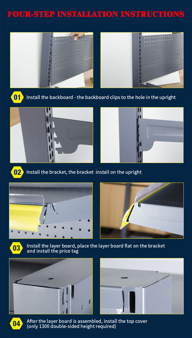 product name | Retail Store Shelves Supermarket Shelves Gondola Shelves With Pegboard Back Panel |