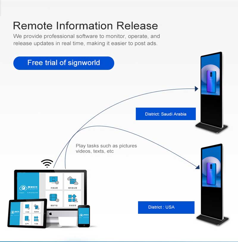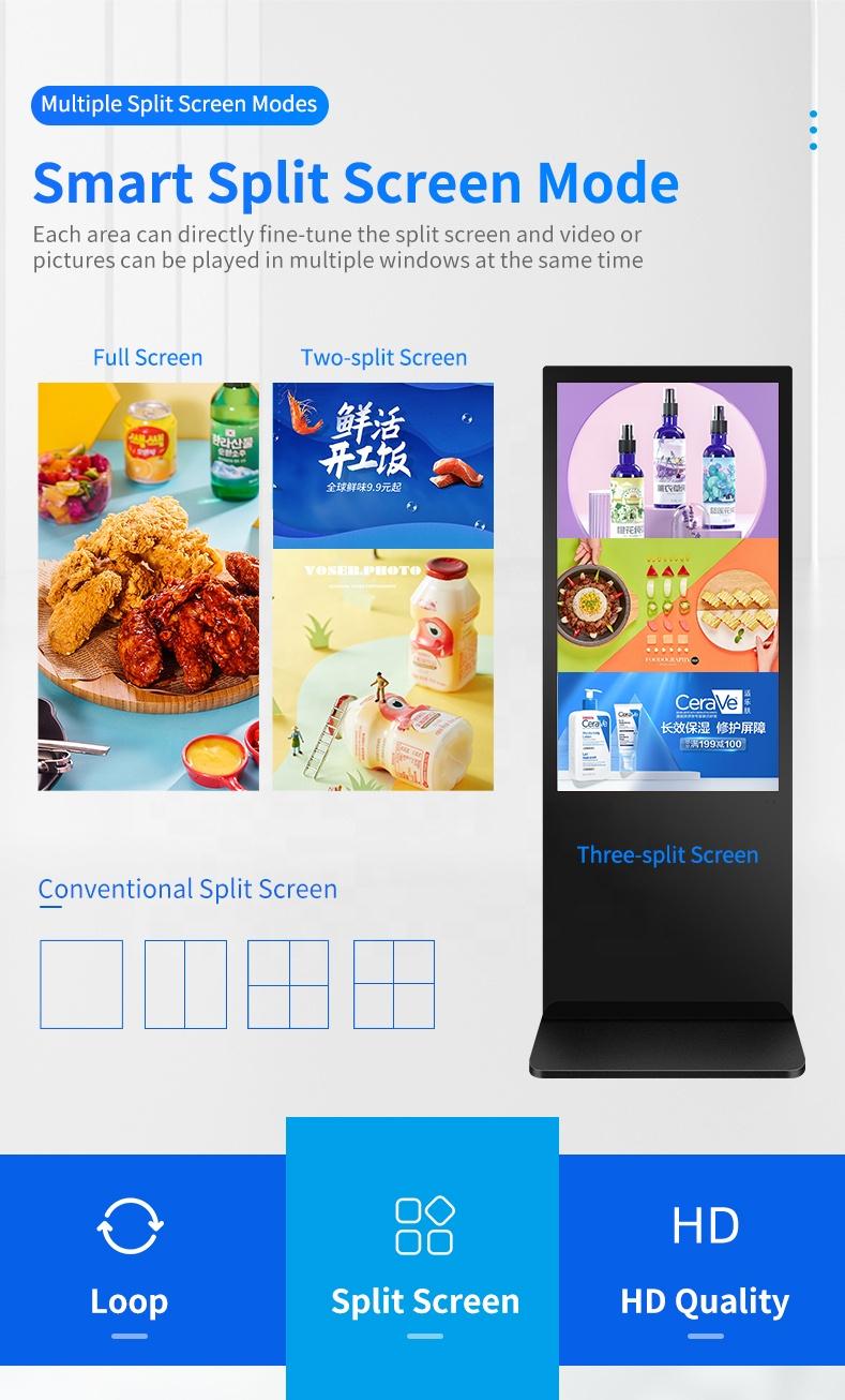 | brightness: | 350 cadmium/square meter | Packaging Details: | The screen sizes of the hanging advertising machines are 40 inches, 50 inches, 55 inches, and 65 inches; the screen sizes of the floor-standing advertising machines are 42 inches, 46 inches, and 55 inches. |