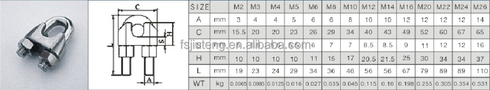 | structure: | saddle clip | product name: | Stainless Steel 304 Wire Rope Clamp |
