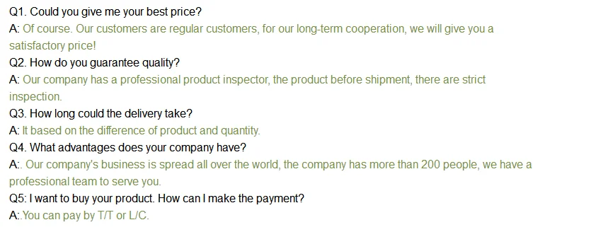 1. Payment: T/T, 30% deposits; 70% balance against the copy of shipping documents.