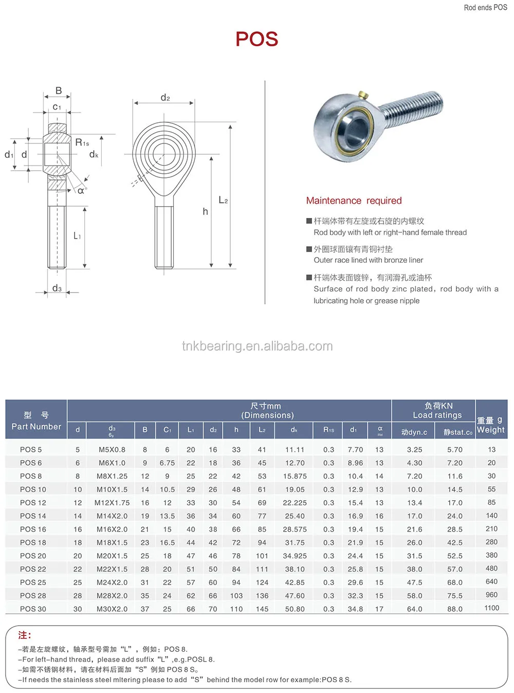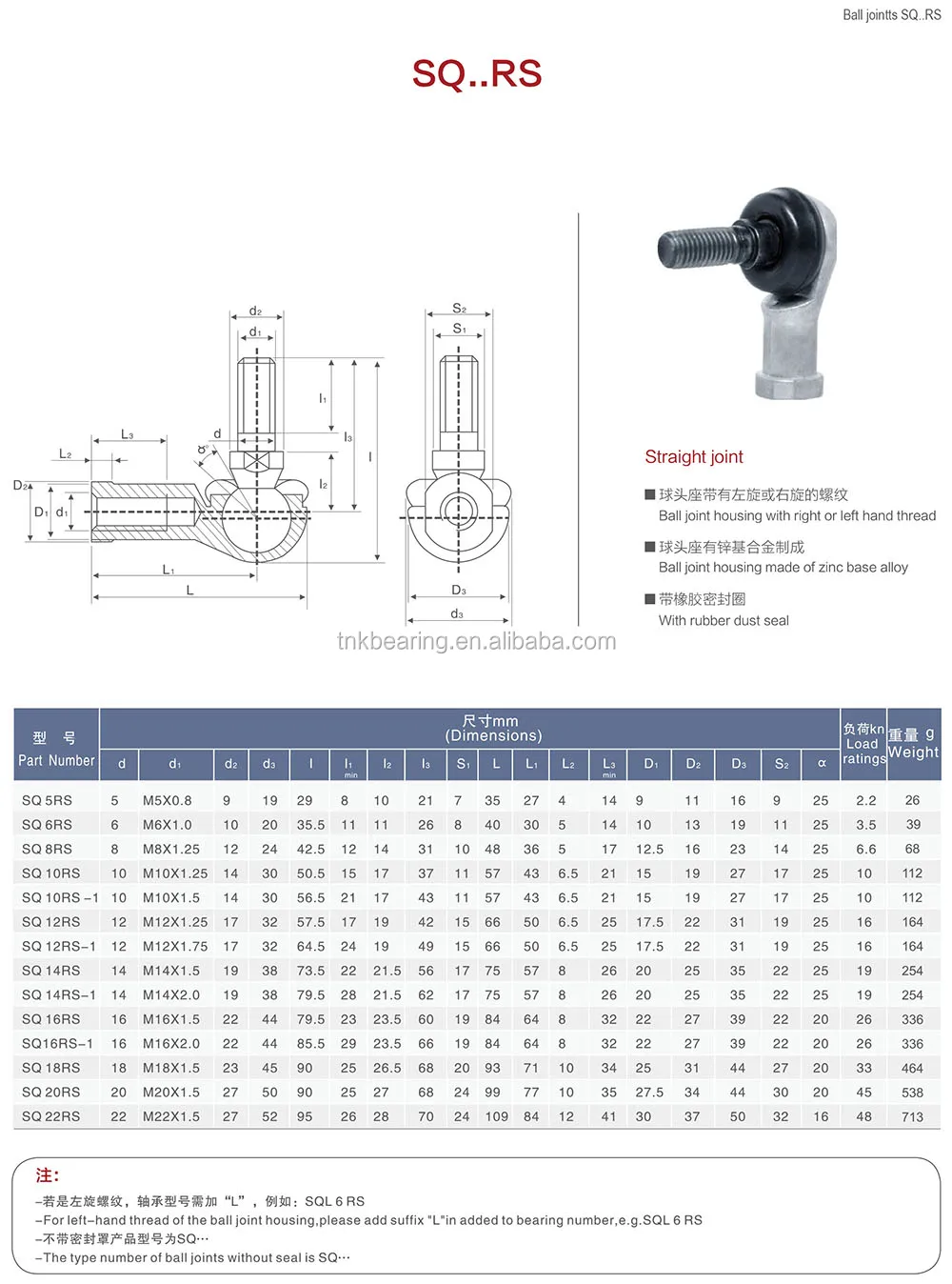 Material | Rod end body : high carbon steel, Ball : bearing steel GCr15 |