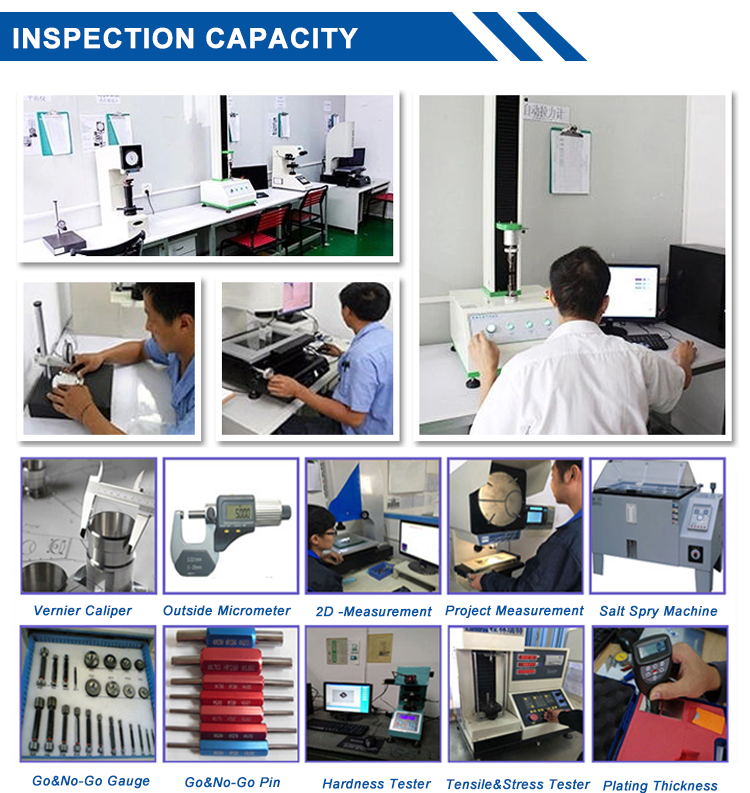 CNC machining, CNC turning, CNC milling, CNC center machine, Automatic lathes, wire cutting machines CNC punch press, CNC bending machine CNT punching machine, CNC/automatic lathe, Drilling machine, hydraulic press, riveting machine, Tapping machine, welding machine, film laminating machine, etc. |