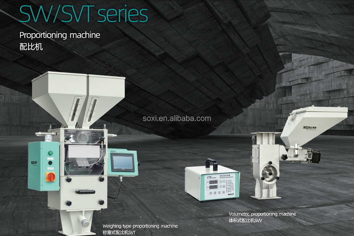 Weighing mixers used in injection molding and extrusion industries need to mix various raw materials accurately in proportion, and the mixing accuracy can reach ±0.1%. This series of products all use PLC controllers and advanced batching algorithms to ensure the high quality and comprehensive technical characteristics of this series of products. The products have excellent performance, stable operation, safety and reliability.