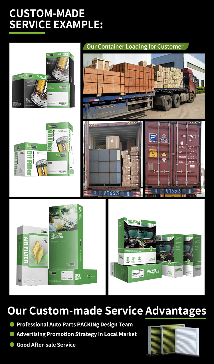 Q1: Are you a manufacturer or a trading company? A1: We are a professional manufacturer of AC filters for 35 years, also air filters and oil filters Q2: Can you provide OEM/ODM service? A: Yes, we can provide OEM/ODM service at the same time. Have a professional custom service team. We can design your brand packaging. Q3. What is your packing terms? A: Generally, we pack our goods with our own brand packaging. If you have a legally registered patent, we can pack the goods in your branded boxes after getting your authorization letter. Q4. What is your payment terms? A: T/T 30% as deposit, 70% before delivery. We will show you the photos of the products and packages before you pay the balance. Q5. What is your terms of delivery? A: EXW, FOB, LC, any way you want, we can talk and confirm for you. Q6. How about your delivery time? A: Generally, it will take 3 to 10 days after receiving your advance payment. The specific delivery time depends on the items and quantity of your order. Q7. Can you produce according to samples? A: Yes, we can produce with your samples or technical drawings. We can manufacture molds and fixtures. Q8. What is your sample policy? A: We can supply the free sample if we have ready parts in stock, but the customers have to pay the express cost. Q9. Do you test all your goods before delivery? A: Yes, we have 100% test before delivery Q10: How do you make our business long-term and good relationship? Answer: 1. We maintain good quality and competitive prices to ensure our customers benefit; 2, We respect every customer and treat them as friends, no matter where they come from, we sincerely do business and make friends.