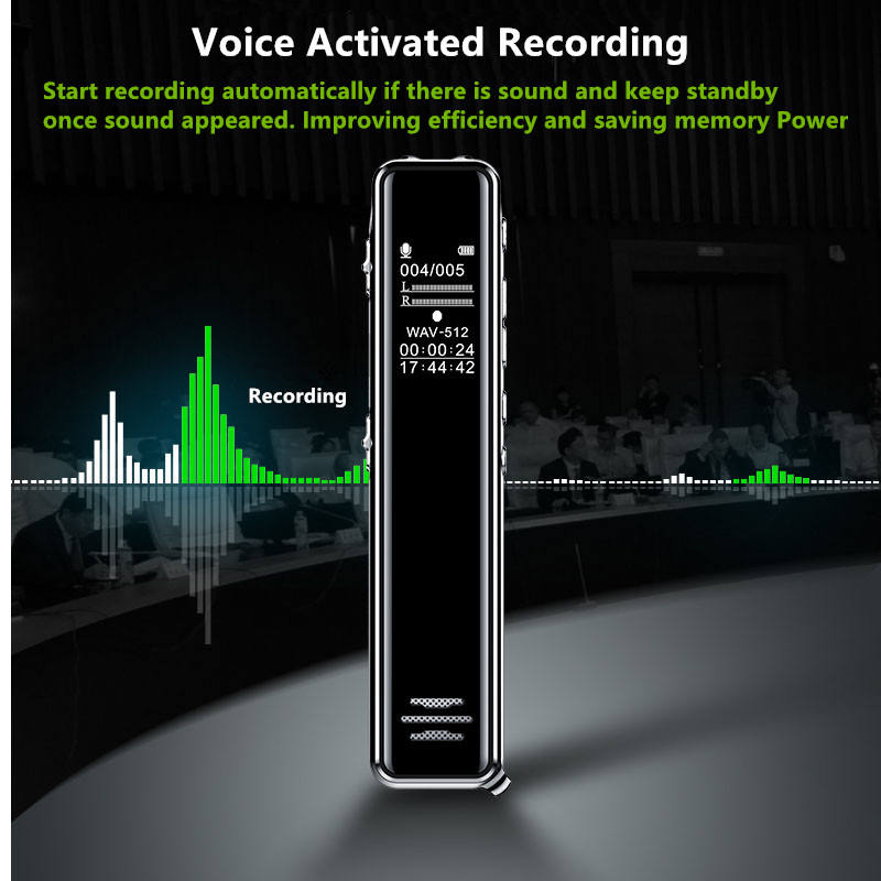 4. One-button recording, MP3 recording, PCM recording: 1536Kbit, recording time: 20 hours, optional recording: 50DB, automatic split recording
